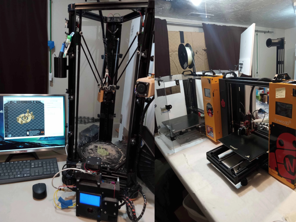 Customers would bring me their ideas, even just sketches on napkins, and I turned them into reality. I created CAD models, provided detailed drawings, printed prototypes, machined necessary parts, and assisted with patent work. It was very fulfilling to see my customers go into business and succeed doing sales. I used 3d printing extensively and was a very early adopter. I purchased my first (and by no means my last) 3d printer way back in 2013. A SeemeCNC Rostock Max V1